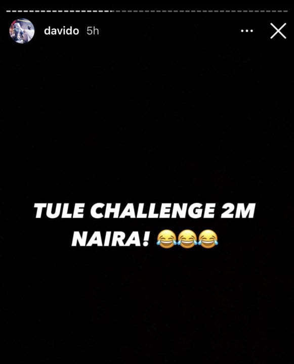 The post Davido Begins #Tulechallenge With 2M Naira Grand Prize appeared first on Most Trusted Voice in Music & Afrobeats from Nigeria & Africa | Notjustok.